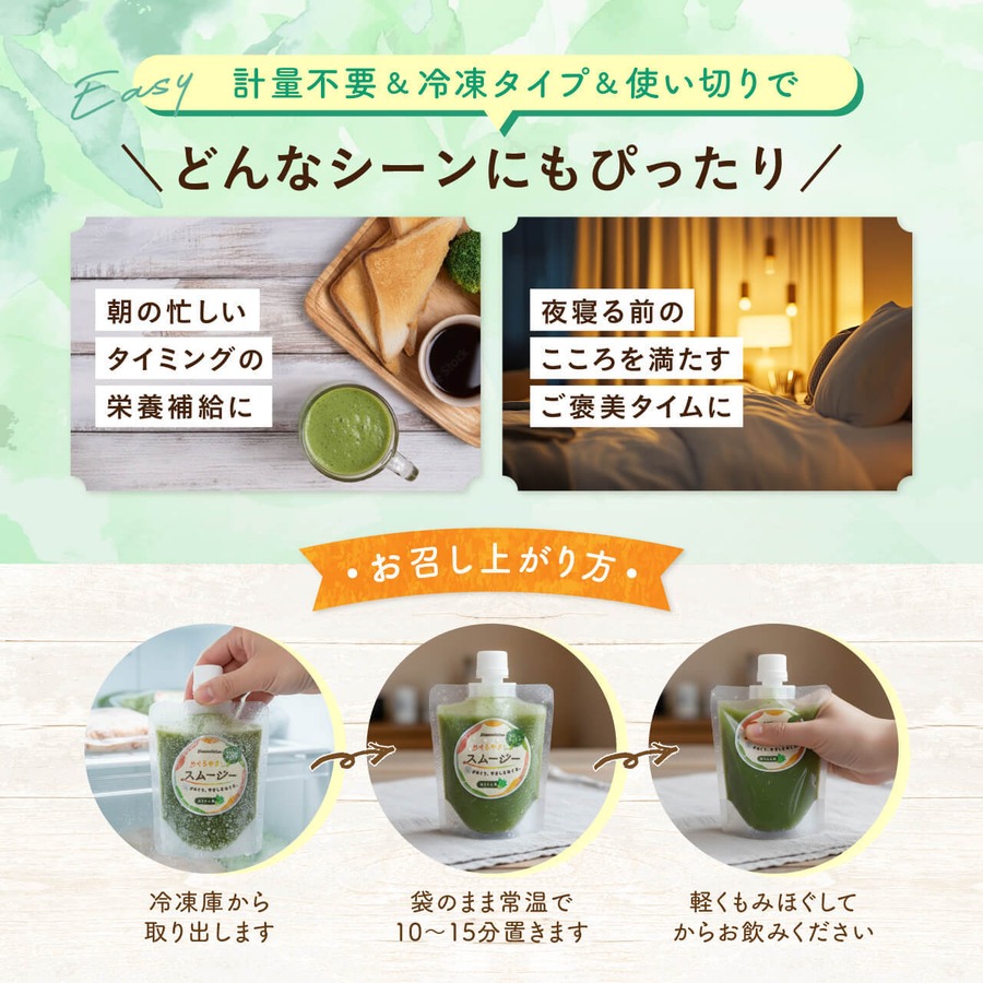 本来捨てられるはずの規格外野菜に、新しい命を吹き込んだ循環型スムージーです。