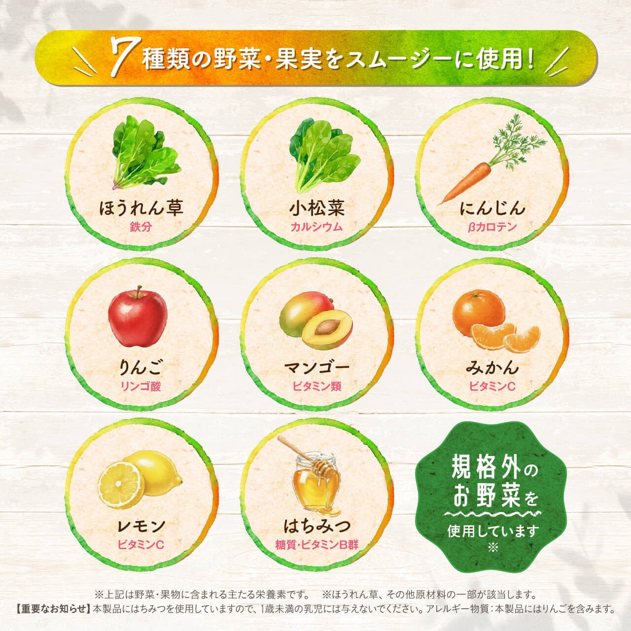 ほうれん草、小松菜、りんご、マンゴー、人参、みかん、レモン、はちみつ
